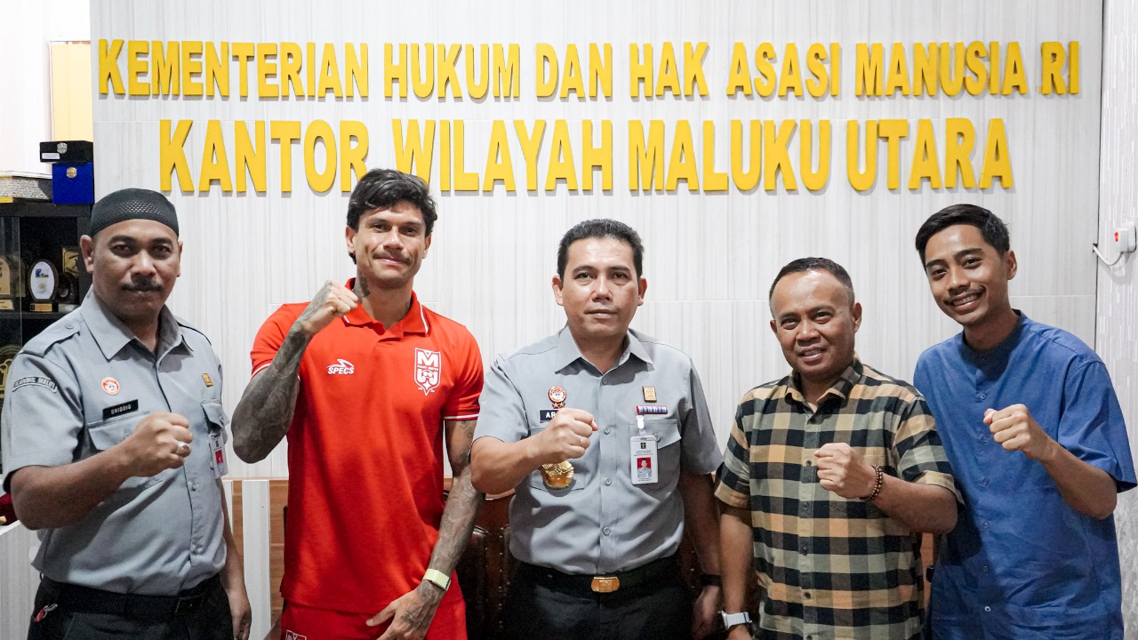 poskosport, Pemain sepak bola profesional yang bermain sebagai penyerang untuk klub elit Malut United, Ciro Henrique Alves Ferreira E. Silva didampingi Asisten Manajer Malut United, Asghar Saleh menggelar konsultasi pewarganegaraan pada Kantor Wilayah (Kakanwil) Kementerian Hukum (Kemenkum) Maluku Utara (Malut).