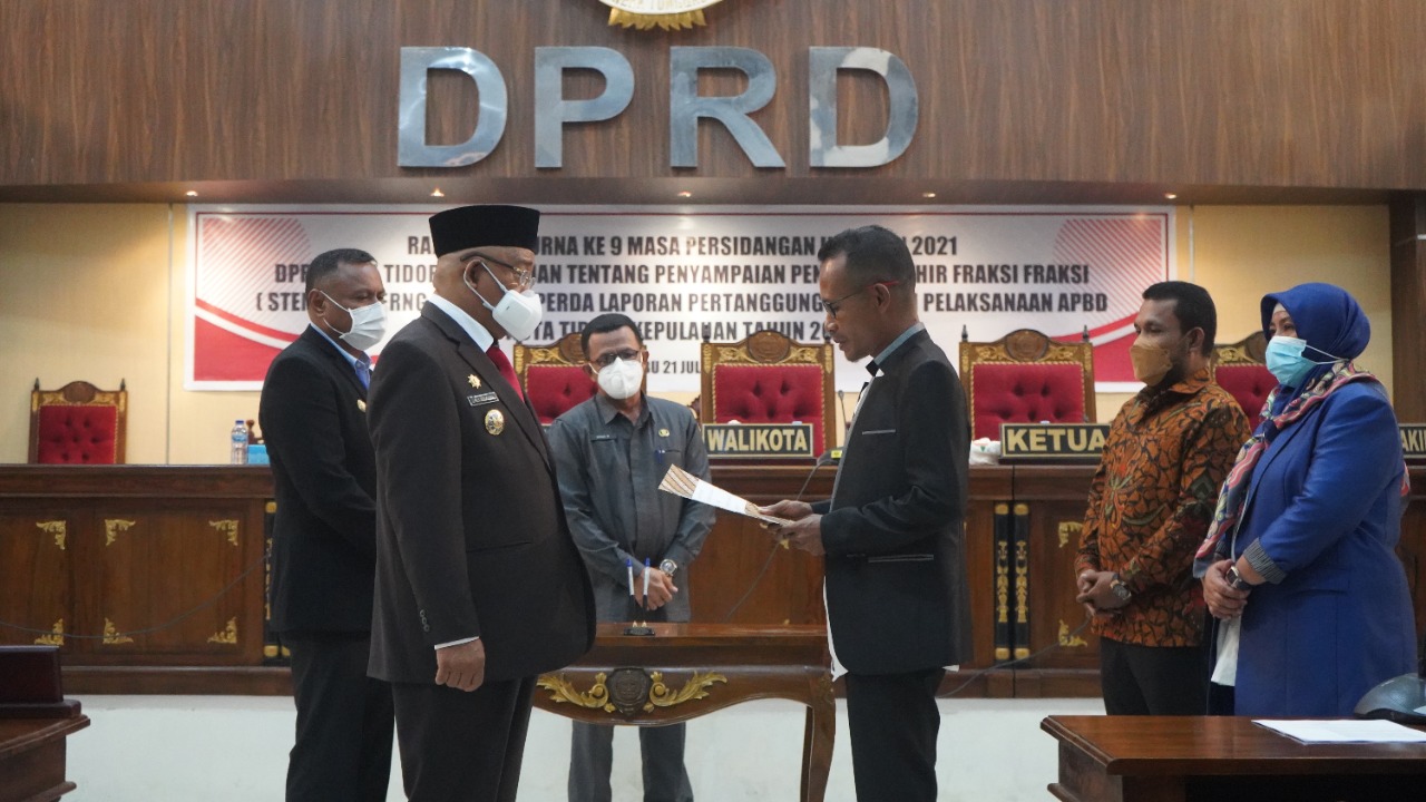 TIDORE-PM.com, Dewan Perwakilan Rakyat Daerah (DPRD) Kota Tidore Kepulauan, menerima dan menyetujui nota keuangan dan Rancangan Perubahan Anggaran Pendapatan Belanja Daerah (RAPBD) Perubahan Kota Tidore Kepulauan tahun 2021, selanjutnya menjadi peraturan daerah.