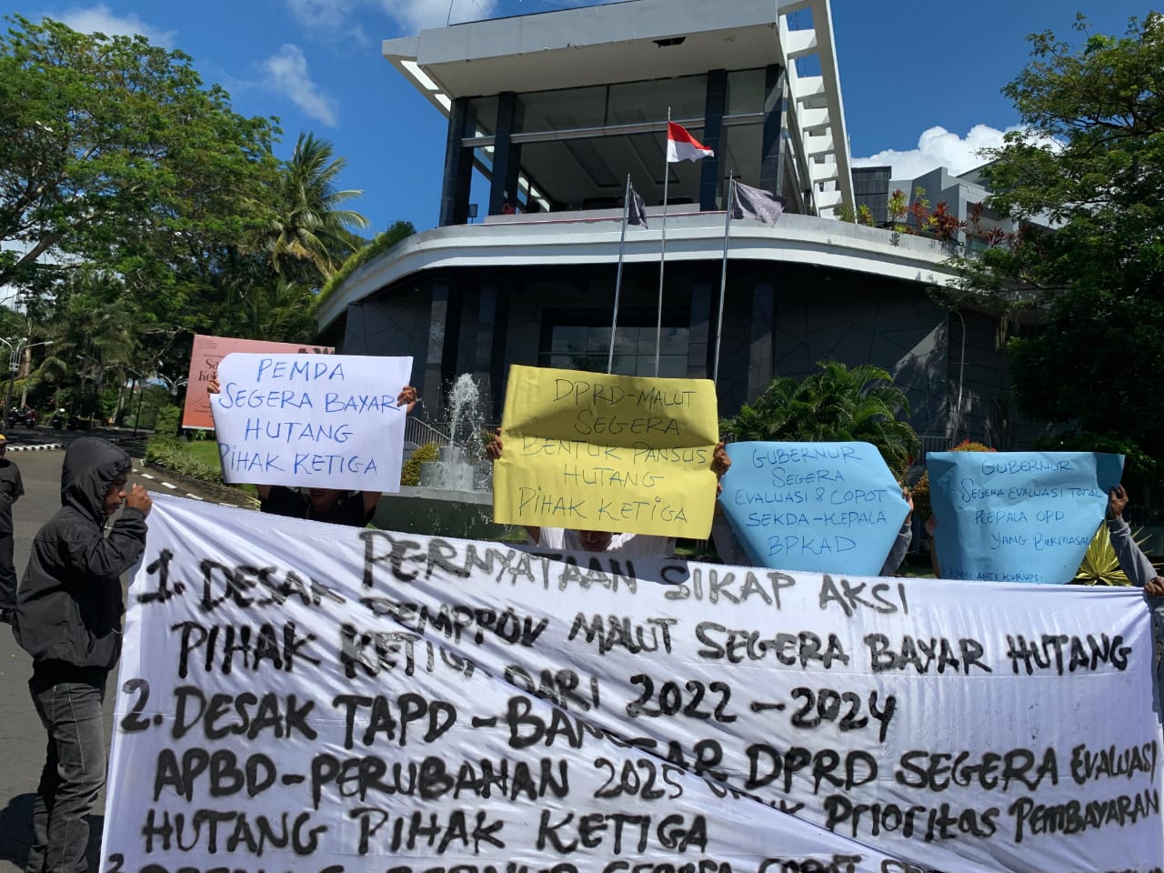 “Namun, nyatanya pengesahan dokumen APBD Induk 2025, utang pihak ketiga justru tidak menjadi prioritas untuk diselesaikan. Kemudian Pemprov saat ini kembali berjanji akan menyelesaikan utang pihak ketiga melalui APBD-Perubahan. Nyatanya justru hanya menjadi surga telinga bila tidak ditagih,” cetus Juslan.