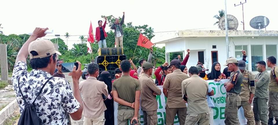 “Bupati, pak sekda, kalau anda datang hanya mengotak atik birokrasi daerah ini kemudian hanya bersenang-senang di atas penderitaan rakyat Morotai. Maka, jangan hidup di Morotai. Keluar saja dari Kabupaten Pulau Morotai, rakyat tidak membutuhkan anda. Sebab, rakyat Morotai membutuhkan pemimpin-pemimpin yang ideal. Pemimpin yang selalu menjunjung tinggi nilai-nilai kemanusiaan, bukan mengotak atik dan memutasi ASN,” koar Cilfan Djaguna, salah satu orator utama dalam aksi IMM di depan Kantor Bupati Morotai, Selasa (14/09/2021).