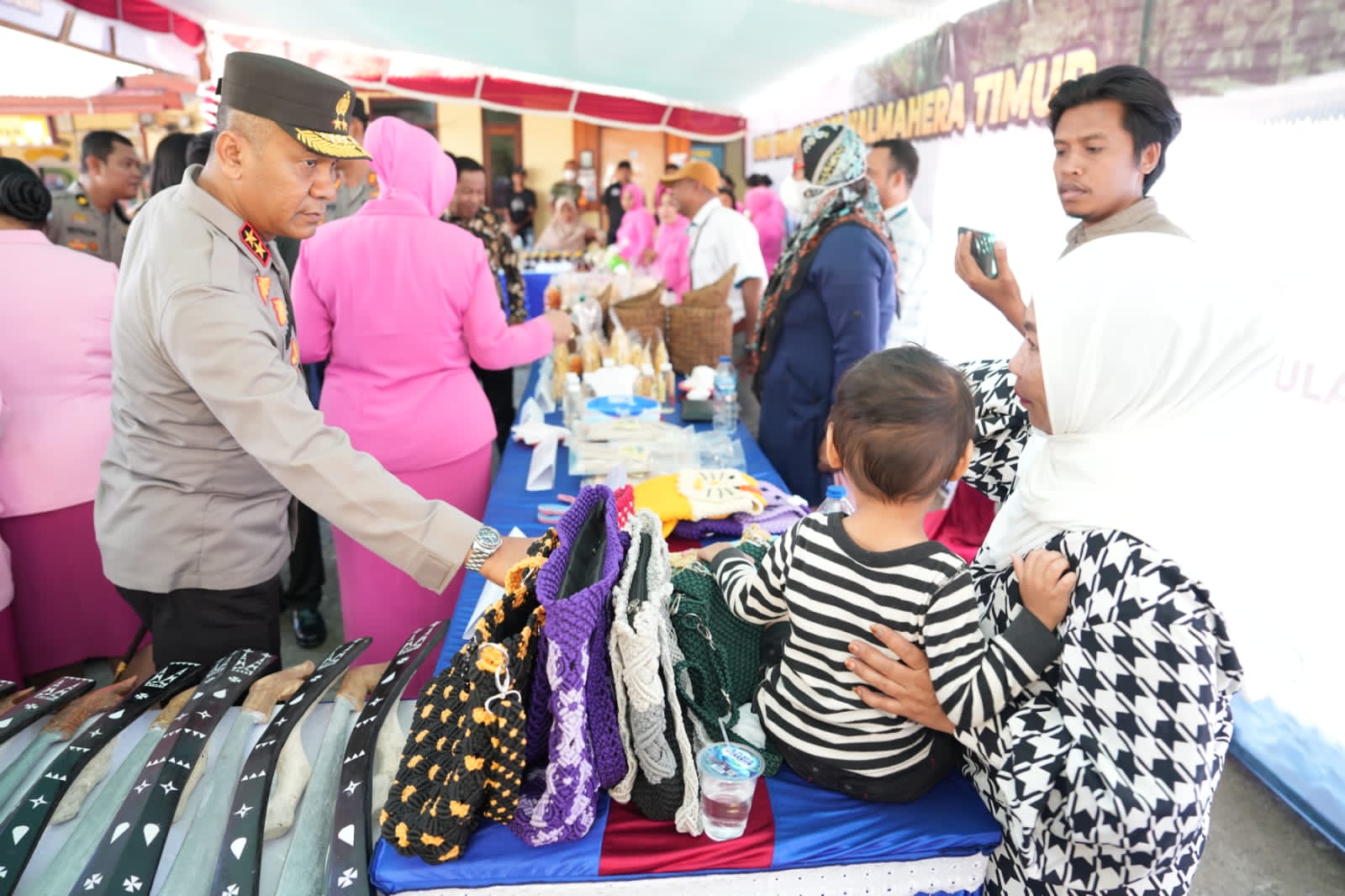 Hasil UMKM yang ditinjauh Kapolda adalah tikar kalasa, parang salawaku, tas talikur, sagu Maba, minyak VCO, kripik pisang, pot sabut kelapa, kopi Halmahera, beras Subaim, jambu kristal dan