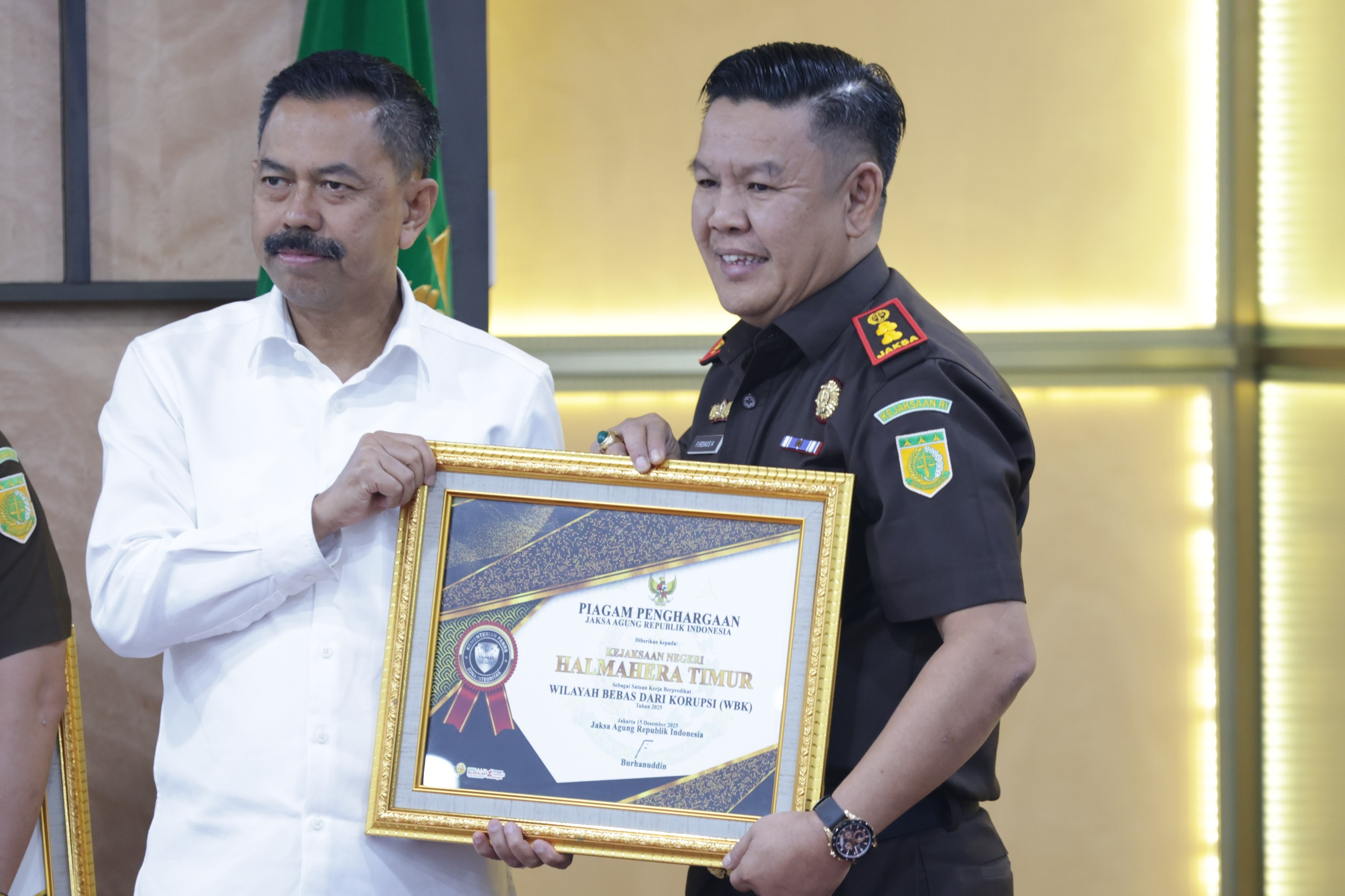 Penghargaan WBK diterima langsung Kepala Kajari Haltim, Firdaus Affandi, diserahkan Jaksa Agung Muda Tindak Pidana Umum, Prof Drs. Asep Nana Mulyana di Jakarta, Rabu (18/12/2025).