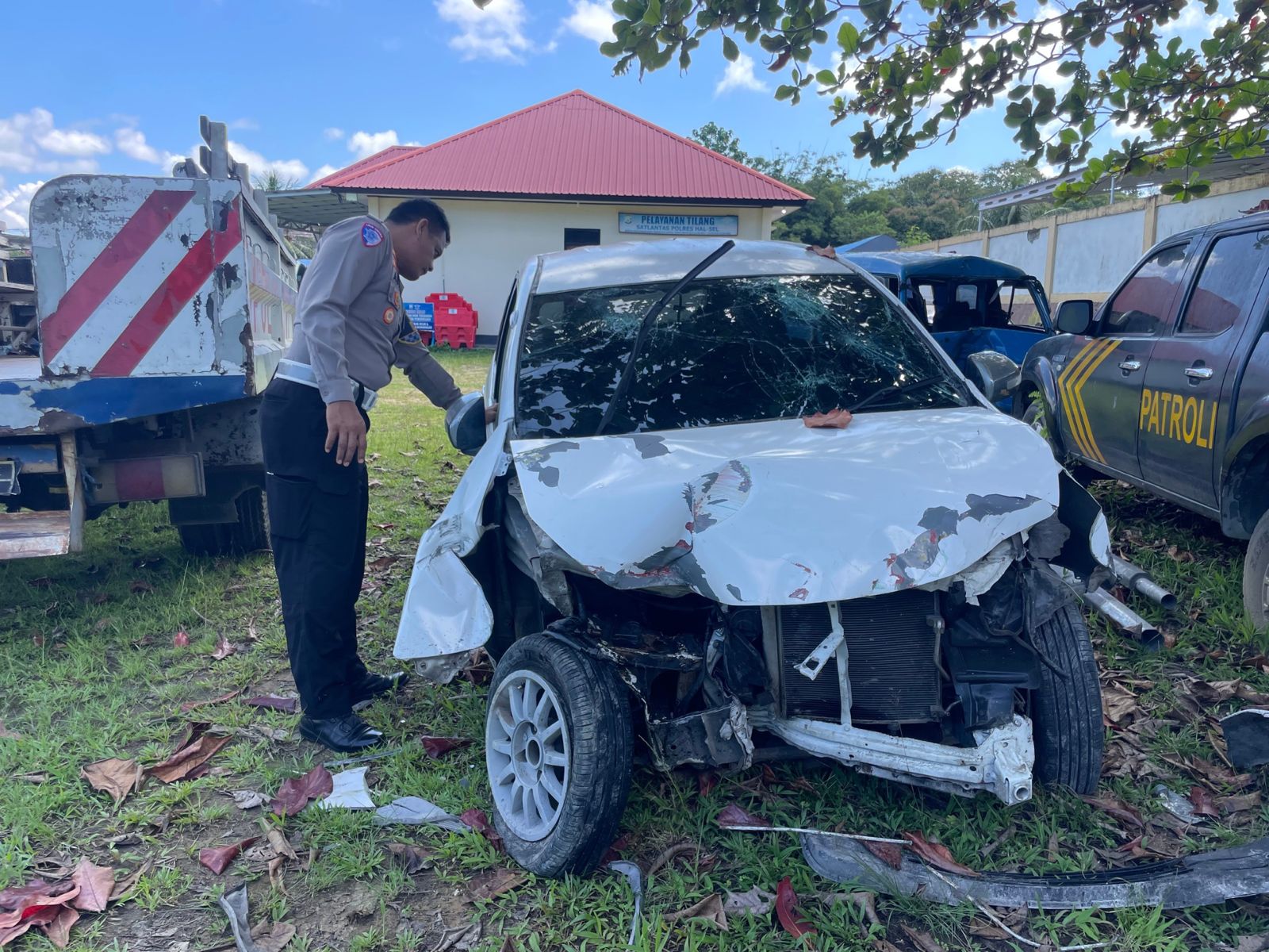 Mobil tersebut mengalami kecelakaan tunggal di Jalan Poros Tomori, Labuha, sekitar pukul 05.30 WIT Senin (29/09/2025) dini hari.