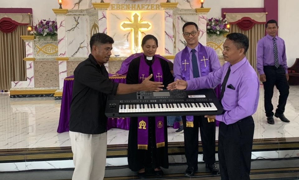 “Bantuan alat musik ini merupakan wujud kepedulian Pak Namto kepada sarana ibadah yang dibutuhakn oleh jemaat,” ujarnya.