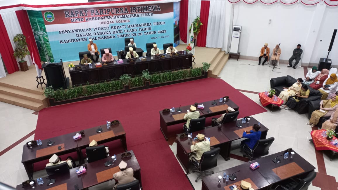 Paripurna digelar dalam rangka memperingati Hari Ulang Tahun (HUT) ke-20 Kabupaten Halmahera Timur yang mengusung tema “Merajut kebersamaan memperkuat peran sumberdaya menuju Halmahera Timur maju dan sejahtera”.