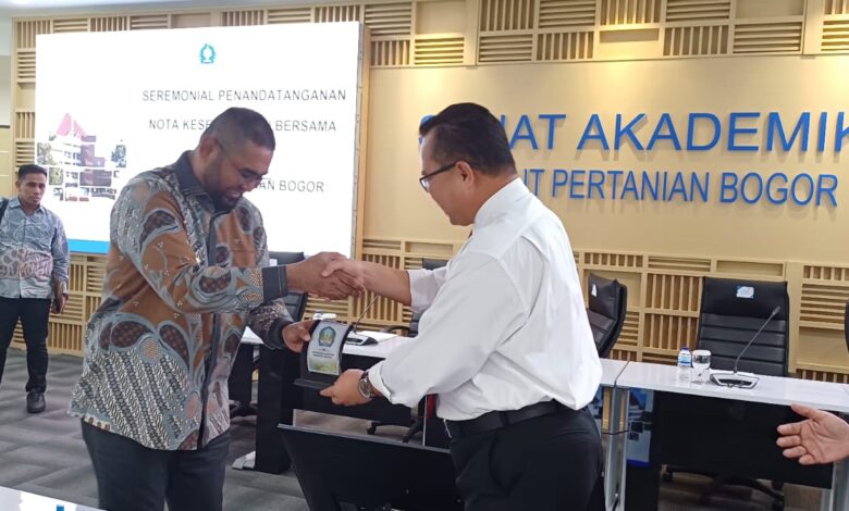LABUHA-pm.com, Pemerintah Kabupaten Halmahera Selatah, Provinsi Maluku Utara dan Institut Pertanian Bogor (IPB) University resmi bekerjasama lewat penandatanganan Nota Kesepahaman di bidang agromaritim.