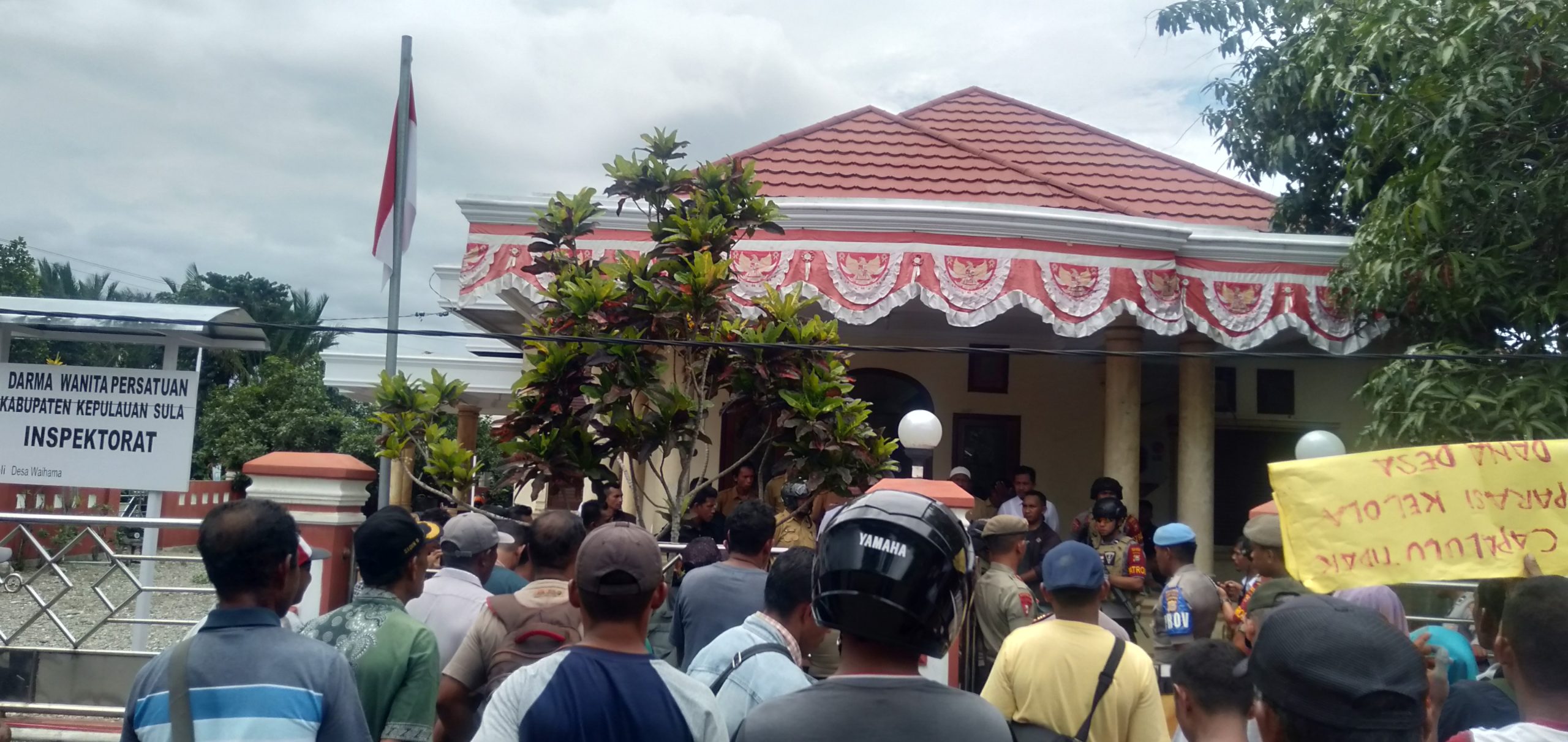 SANANA-PM.com, Puluhan masyarakat Desa Capalulu Kecamatan Mangoli Tengah, Kabupaten Kepulauan Sula (Kepsul), Senin (6/1/2019) menggelar aksi demonstrasi di depan Kantor Inspektorat. Dalam aksi itu masyarakat meminta Inspektorat selaku tim audit internal pemerintah daerah (Pemda) segera mengeluarkan hasil audit pengelolaan dana desa (DD) Desa Capalu mulai tahun 2016 -2018. Pasalnya, realisasi DD di Desa Capalulu tidak sesuai dengan hasil yang ada di lapangan. “Kami menduga ada sebagian anggaran DD yang ditilep oleh kades dan kroni-kroninya. Untuk itu kami minta Inspektorat segera keluarkan hasil audit,”ungkap koordinator aksi, Sahrul S Ipa dalam orasinya, kemarin.