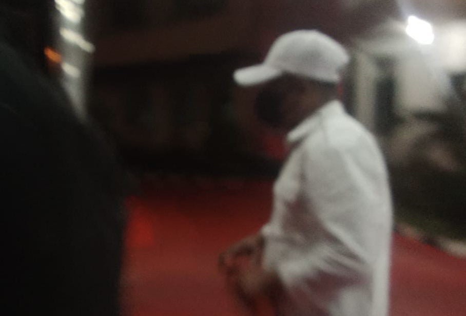 Datang memenuhi panggilan Kejati Malut, Ucu mengenakan kemeja lengan panjang putih dan topi putih. Ia menutupi wajahnya dengan masker berwarna hitam.