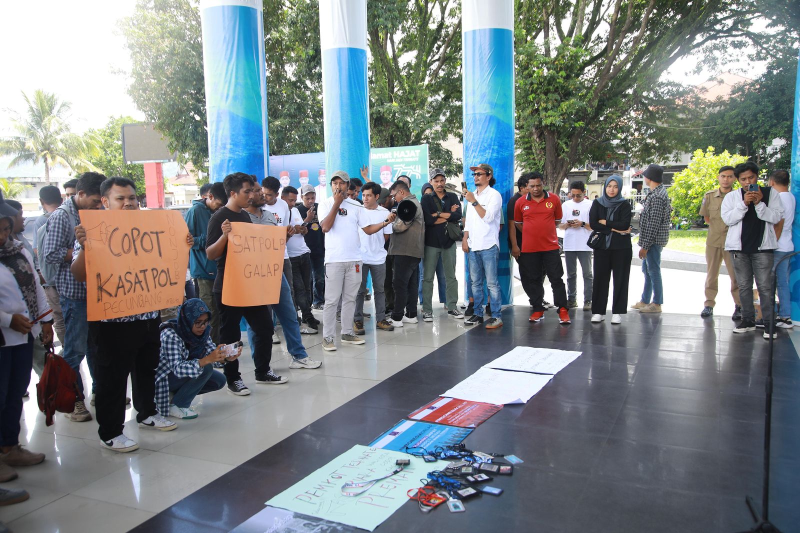 Mereka menuntut pencopotan Fhandy Mahmud dari jabatanny sebagai Kasatpol PP Kota Ternate.