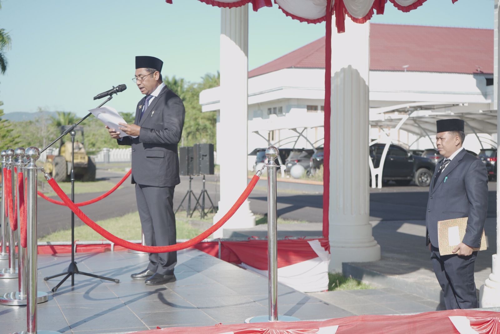 Upacara berlangsung di halaman Kantor Bupati Haltim dengan tema “Dengan Otonomi Daerah Kita Wujudkan Asta Cita”.