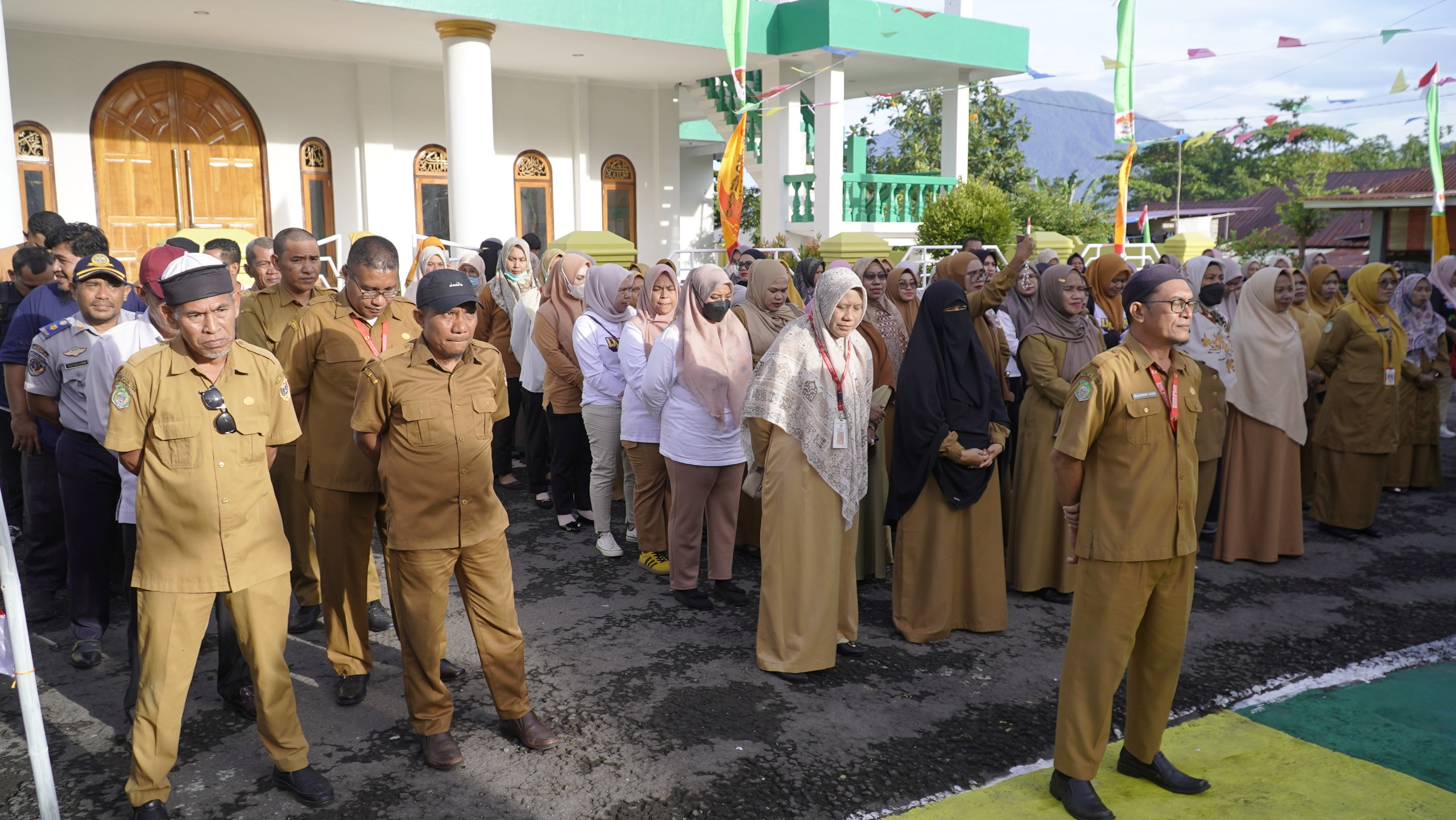 TIDORE-pm.com, Kepala Kecamatan Tidore Utara, Ade Soninga menggelar apel gabungan ASN dan non ASN di Kelurahan Mareku, Selasa (25/2/2025).