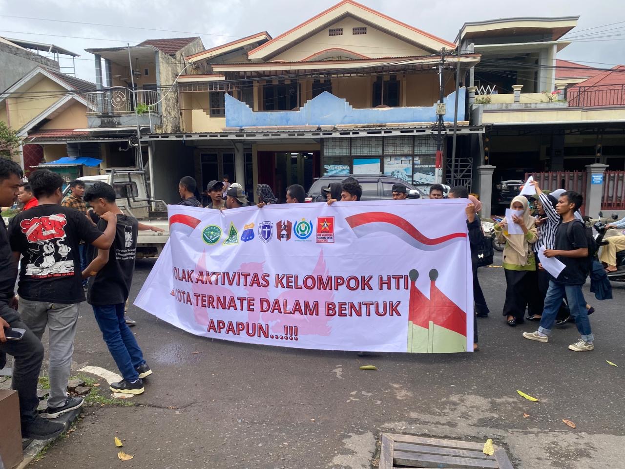 poskomalut, Sejumlah organisasi yang tergabung dalam Cipayung Plus Kota Ternate menggelar unjuk rasa tolak segala bentuk aktivitas kelompok Hizbut Tahrir Indonesia (HTI).
