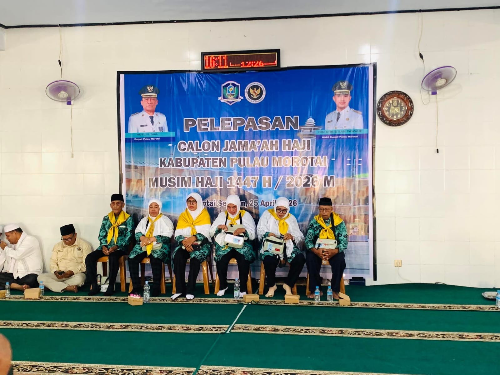 Acara pelepasan JCH oleh Pemda Morotai diwakili Sekda Muhammad Umar Ali bertempat di Masjid Desa Daruba, Morotai Selatan.