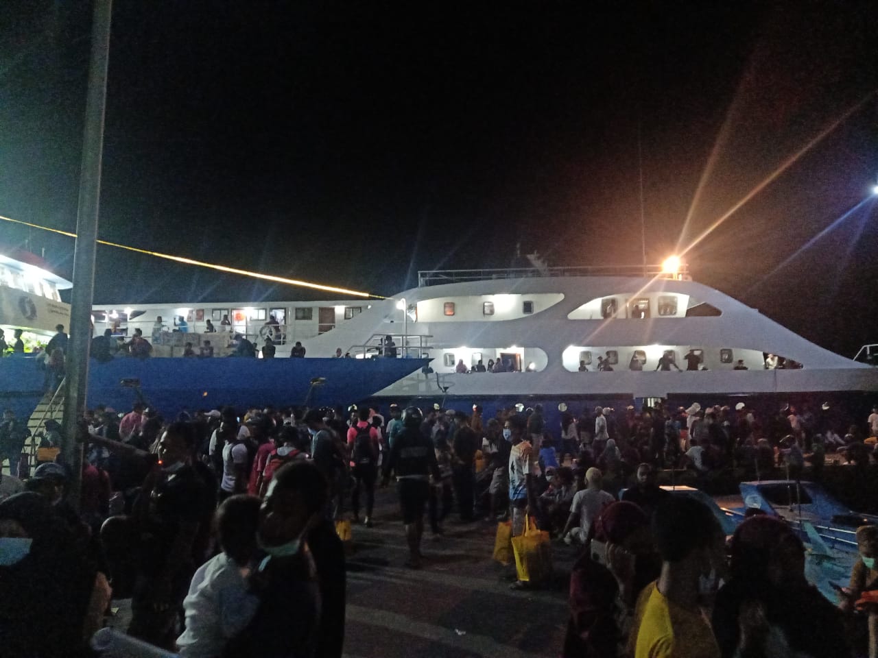 Amatan Posko Malut, pukul 21:00 wit, dua armada KM UKI Raya 5 dengan Rute Ternate- Pelabuhan Babang dan KM Sumber Raya 5 Ternate-Pelabuhan Kupal sudah dipadati ratusan Penumpang yang hendak mudik ke kampung halaman masing-masing.