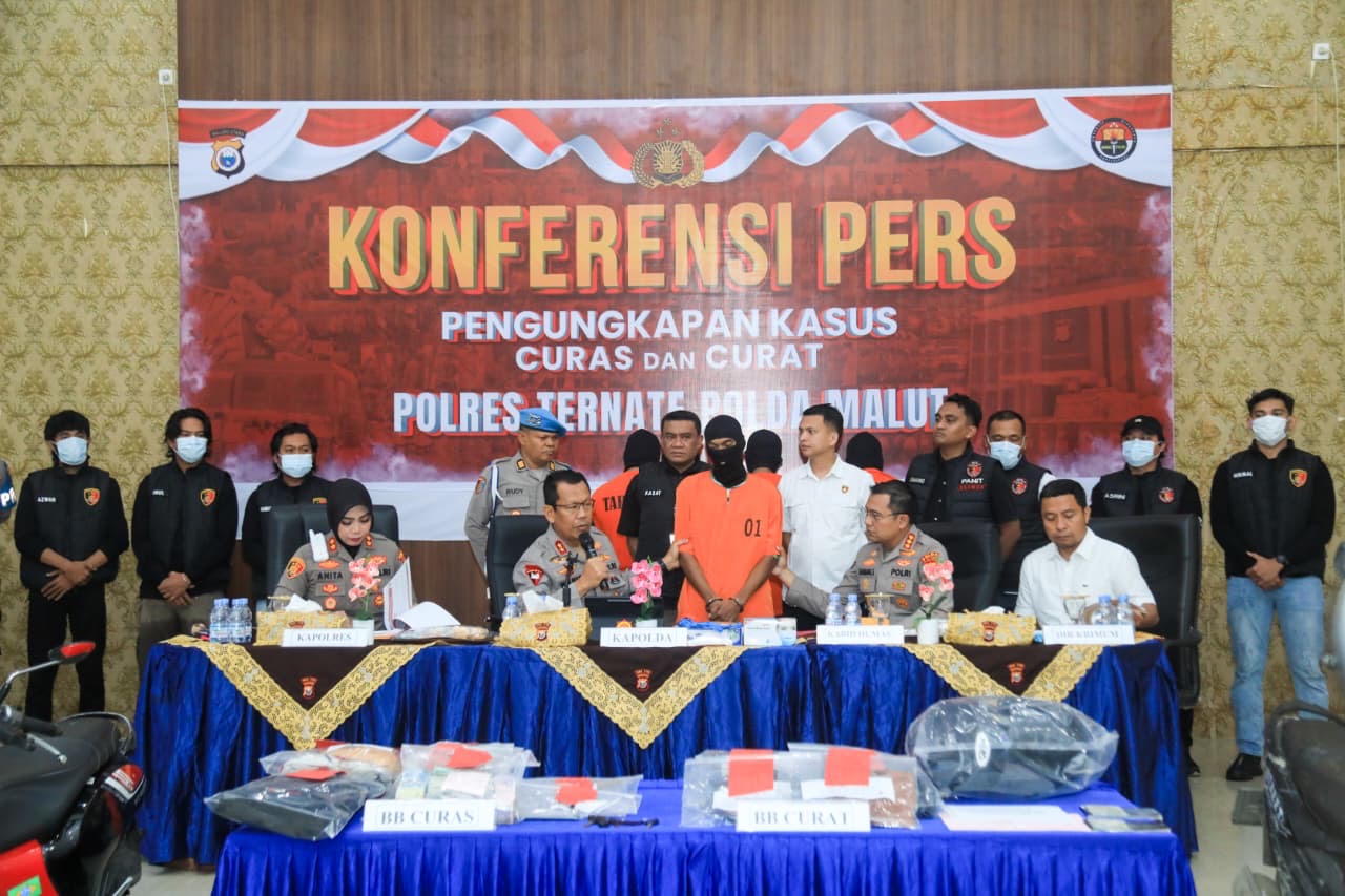 “Kasus ini bermula dari laporan polisi pada 25 Juli 2025 terkait tindak pencurian dengan kekerasan di toko Al-Nizam, Kelurahan Gamalama, Ternate Tengah,” ucap Kapolda Malut Irjen Pol Waris Agono didampingi Kabid Humas, Dirreskrimum, dan Kapolres Ternate saat jumpa pers, Rabu (27/8/2025).
