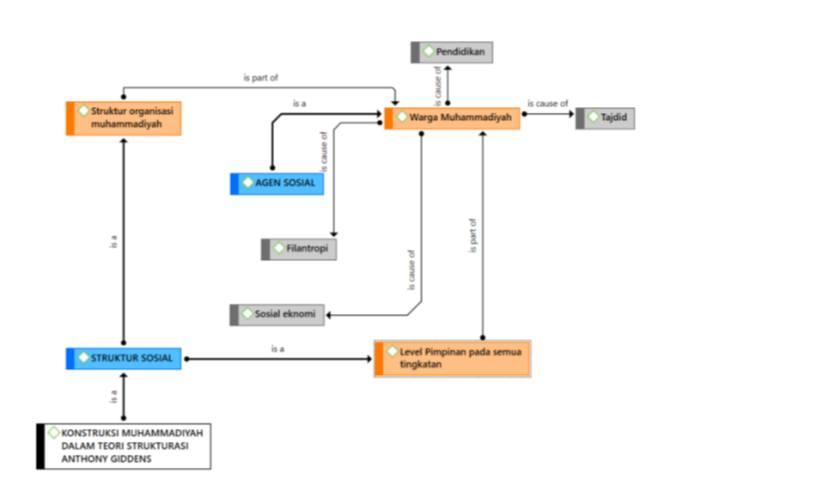 Disadari, kemajuan Muhammadiyah dan kompleksitas gerakan ini memerlukan pendekatan teoritis yang mampu mengkonstruksi relasi antara struktur yang relatif stabil dan tindakan agen yang terus berubah. Anthony Giddens dengan teori Strukturasinya mencoba menawarkan gagasan konseptual untuk menganalisis keterhubungan struktur dan agen (Orlikowski, 2020), bahwa struktur sosial dan agen sosial membentuk resiproka-saling mempengaruhi secara bebas- antara struktur kelembagaan organisasi Muhamamdiyah dengan agen sosial Muhammadiyah. Strukturasi memandang bahwa struktur sosial itu tidak bersifat determinis atau upaya membatasi, melainkan hadir melalui reproduksi sosial secara strukturalis dan melahirkan transformasi tindakan agen sosial secara berulang dalam ruang dan waktu (Stones, 2019).