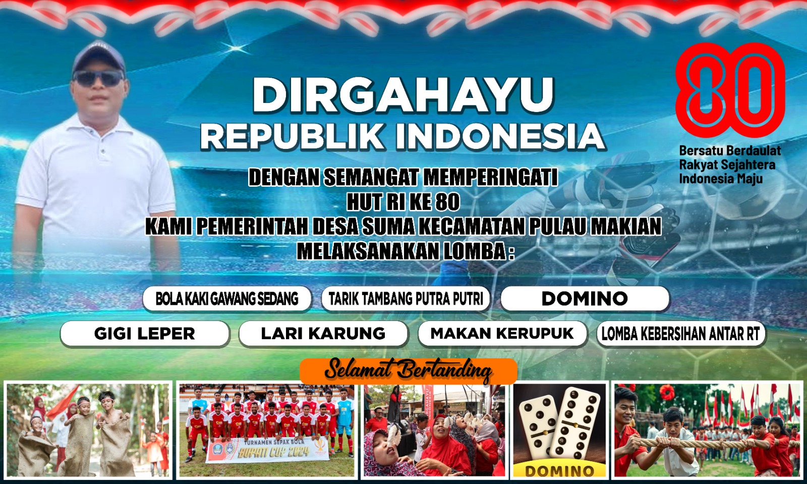 poskomalut, Pemerintah Desa (Pemdes) Suma, Pulau Makian, Halmahera Selatan (Halsel) menggelar berbagai kegiatan dalam rangka merayakan Hari Ulang Tahun (HUT) Ke 80 RI.