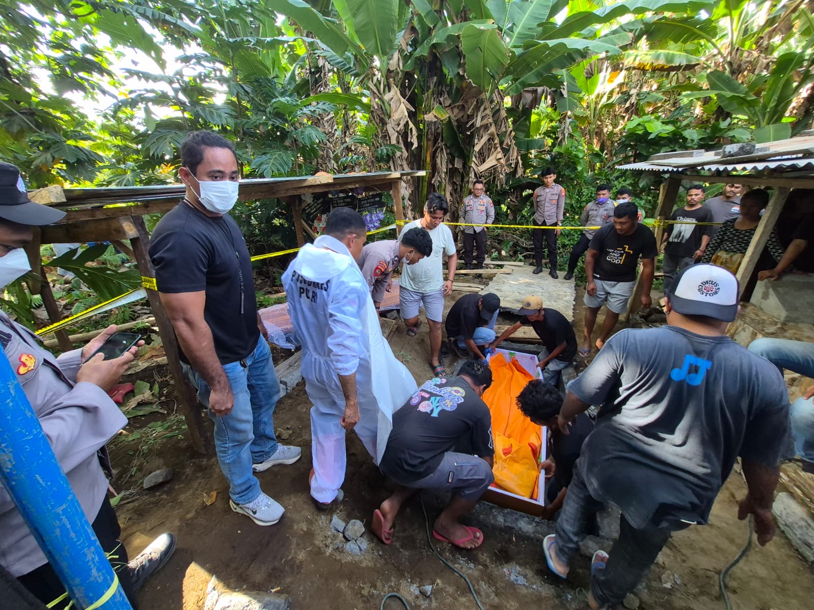 Autopsi berlangsung hampir satu jam, dimulai pukul 16:00 WIT. Lokasi pemakaman jenazah CLK atau Santi di Desa Gorua Selatan.